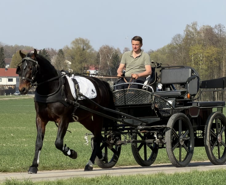 A very charming and handsome gelding, used for tandem driving and ridden by both teenagers and adults. A wonderful partner for the whole family.