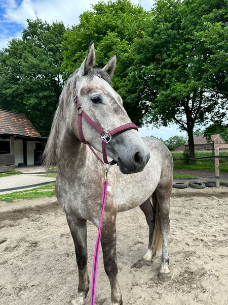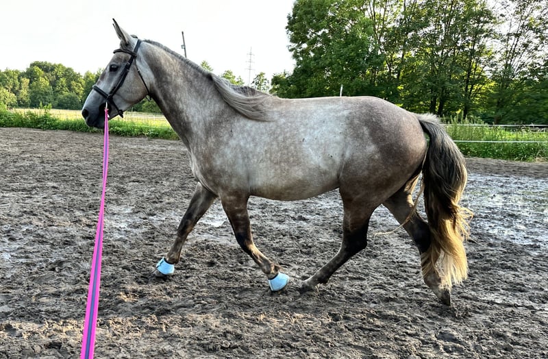 Aus zeitlichen Gründen Verkaufe ich einen wunderschönen Schimmel-Wallach, geboren 2021, ein beeindruckendes schweres Warmblut. Mit einem Stockmaß von 168 cm ist er ein eleganter und kräftiger Freizeitbegleiter. Das Pferd ist freundlich, zuverlässig und bestens für den Freizeitbereich geeignet. Ideal für Reiter, die ein zuverlässiges Pferd suchen. Bei Interesse stehe ich gerne für weitere Informationen und eine Besichtigung zur Verfügung. Er ist an geritten muss noch weiter ausgebildet werden.