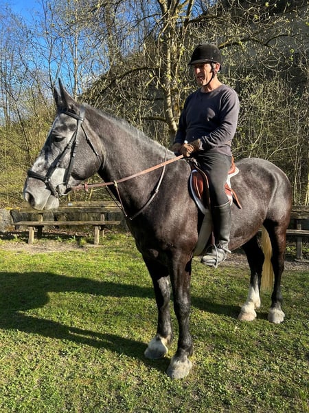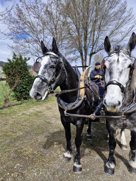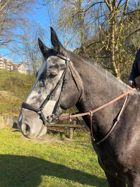 Schweren Herzens zu verkaufen aufgrund Zeitmangel ROMEO, ein Schweres Warmblut (Pole), Wallach, 5-jährig, Rappschimmel mit sehr liebevollem und zutraulichem sowie zuverlässigem Charakter und angenehmes Temperament mit schöner Halsung, Stkm 166cm, Freizeit englisch geritten und zweispännig gefahren (Ausbildung im NPZ), verkehrs- und geländesicher, verlade- und schmiedefromm, beschlagen, entwurmt, geimpft und gechippt. Guter Züger mit starkem Schritt und schöner Haltung. Ein schickes, auffälliges Pferd im Aussehen durch seine spezielle Farbe, aber dennoch sehr angenehm und lieb im Umgang. Ein Blickfang und ein Liebhaber-Pferd. Gerne kann er in Willisau LU besucht werden.