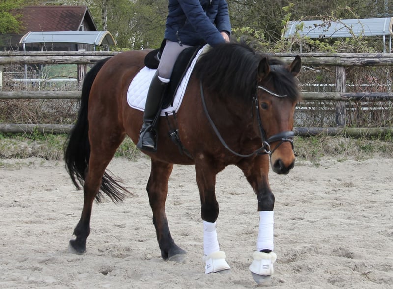 Currently, Idefix is being ground-trained and ridden by an amateur rider and is gradually developing into a wonderful leisure partner. He would benefit from further training with an experienced adult rider. He is equipped with three solid basic gaits, is easy to handle, but tends to make his own decisions when uncertain. This is an area that should definitely be worked on in the future.