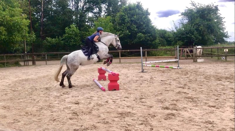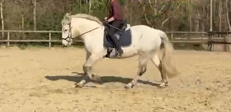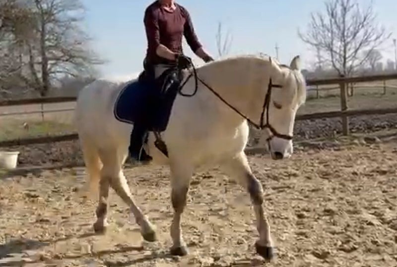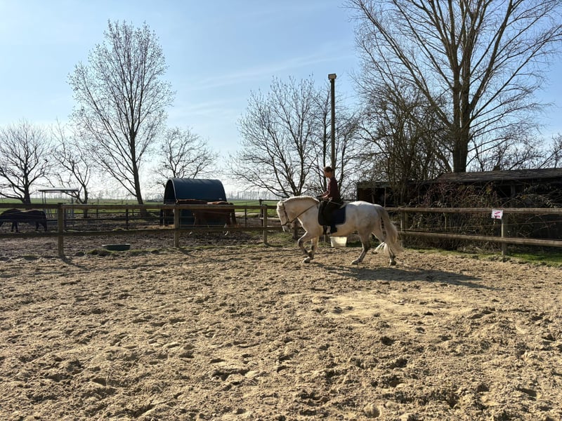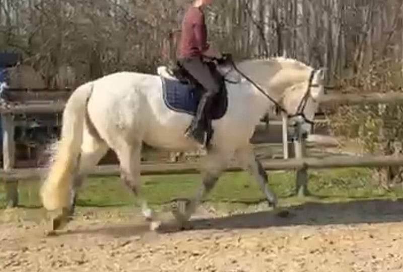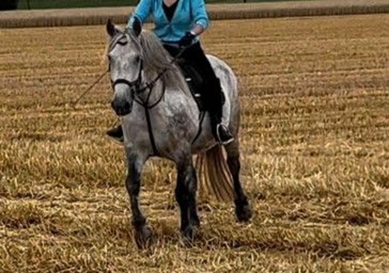Heaven – a gentle, versatile mare seeking her forever home Heaven is a calm, well-balanced mare with a sensitive and honest character. She is looking for a confident, intuitive rider who enjoys a true partnership with their horse. Once Heaven has gained trust, she proves to be motivated, eager to work, and very reliable. She is not suitable for beginners but impresses with her rideability and pleasant demeanor. Training Heaven has been trained in various disciplines and possesses a solid foundation: - Dressage work with leg-yields and traverses - Short reining and flying changes - Cavaletti work and small jumps - Comfortable to ride even without a saddle - Motivated during ground work Trail Riding In the field, she remains calm and relaxed but also enjoys a lively group canter. Character In daily handling, Heaven is friendly and relaxed. Like many mares, she knows exactly what she wants – especially cuddling sessions and treats are highly appreciated. Stabling Currently, Heaven lives in a paddock with a small herd of two Shetland ponies and is well socialized. She is familiar with both pasture and box stall keeping, with regular turnout. Health - No eczema - Regularly vaccinated and dewormed - Barefoot - Well-behaved at the blacksmith - Has not been ill in recent years For Heaven, we are looking for a loving forever home where she can continue to thrive and be appreciated. Dealers and riding schools are excluded.