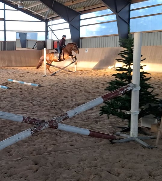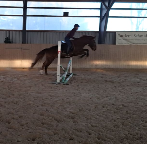 Ich verkaufe eine 9-jährige Fuchsstute im schweren Typ stehend. Sie ist 155 cm groß. Wir haben sie als kindergeeignetes Anfänger-Familienpferd gekauft. Nach 5 gemeinsamen Monaten mussten wir feststellen, dass ihr dieser Job keine Freude macht. Sie hat eine gute Rittigkeit und ist fein am Schenkel. Sie benötigt einen Reiter, der ihr klare Anweisungen und Sicherheit gibt. Dann bekommt man ein Pferd, dass motiviert mitarbeitet, egal ob Dressur-/ oder Springaufgaben. Sie ist mit Stuten verträglich, artig beim Schmied und Tierarzt. Sie wurde regelmäßig geimpft und entwurmt. Im Juli osteopathisch durchgecheckt und im August Zähne frisch gemacht. Videos können bei Interesse geschickt werden. Passendes Zubehör (u.a. Maß-Dressursattel) kann gegen Aufpreis mit erworben werden. Ich wünsche mir für sie eine feste Bezugsperson, die mit ihr zusammen wachsen möchte.