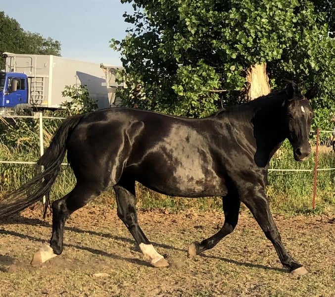 With a heavy heart, I must part with my dream horse, as I unfortunately no longer have time for her due to my job. The beautiful mare from Moritzburg is very sweet and people-oriented. She has been with us for over 13 years and has not had any bad experiences. She does not bite or kick. She is driven, is ridden for leisure, and goes out alone into the countryside. The mare is kept in an open stable and is very robust. She has no metabolic problems or illnesses. Home before price.