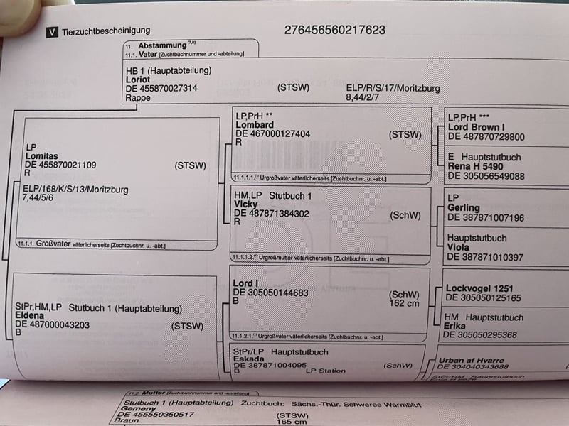 Te koop staat onze driejarige zware warmbloed merrie (Saksisch-Thüringisch zwaar warmbloed, Moritzburger). Haar vader is de prestatiehengst en Bundeschampion Loriot. Ze heeft momenteel een stokmaat van 1,65 m en is zeer typvol en sportief gebouwd. Haar uitstekende beweging en bereidheid tot presteren maken deze charmante en vriendelijke merrie bijzonder. Een ideale allrounder, geschikt voor zowel men- als dressuursport. Ze is voorzichtig in het terrein aangezadeld, kent uitritten in groep en solo, en beweegt onder het zadel in alle drie de gangen in het terrein. Tijdens het rijden toont ze zich altijd kalm en braaf. Geen enkele ongehoorzaamheid zoals bokken, steigeren, bijten of trappen. Zelfs als ze meerdere dagen niet gereden is, kan je gewoon opstappen en meteen rijden. In de bak en op het rijterrein heeft ze al haar eerste rondjes onder het zadel steeds met absolute rust en zelfverzekerdheid voltooid. In een vreemde omgeving blijft ze eveneens kalm. Ook het longeeren en grondwerk kent ze. Ze is regelmatig gevaccineerd, ontwormd en door de hoefsmid verzorgd. Haar tanden zijn recent verzorgd. Ze is schmied- en verladeerf en kent het verkeer op de weg. Sinds haar veulen leeft ze bij ons en is ze op een natuurlijke manier samen met haar leeftijdsgenoten opgegroeid in onze kudde. Ze is nog nooit ziek geweest, heeft nooit slechte ervaringen opgedaan en is zeer mensgericht. We verkopen haar alleen omdat we door een dubbele gezinsuitbreiding helaas niet meer aan haar verzorging kunnen voldoen. In de zomer heeft ze een lichte eczeem, dat met haar deken, die natuurlijk wordt meegeleverd, gemakkelijk te behandelen is. Ze heeft geen open wonden en heeft geen medicijnen nodig. Omdat ze nog geen slechte ervaringen heeft opgedaan en nog een jonge paarden is die verdere opleiding nodig heeft, willen we afzien van een proefrit.