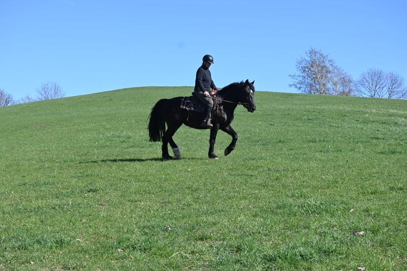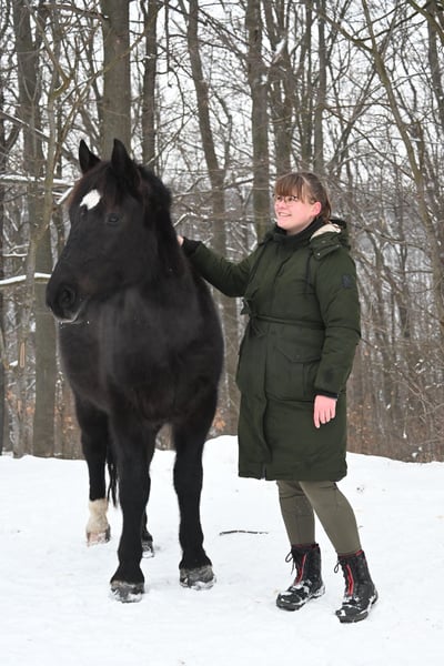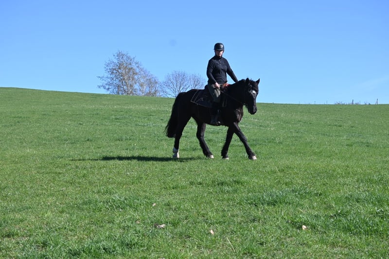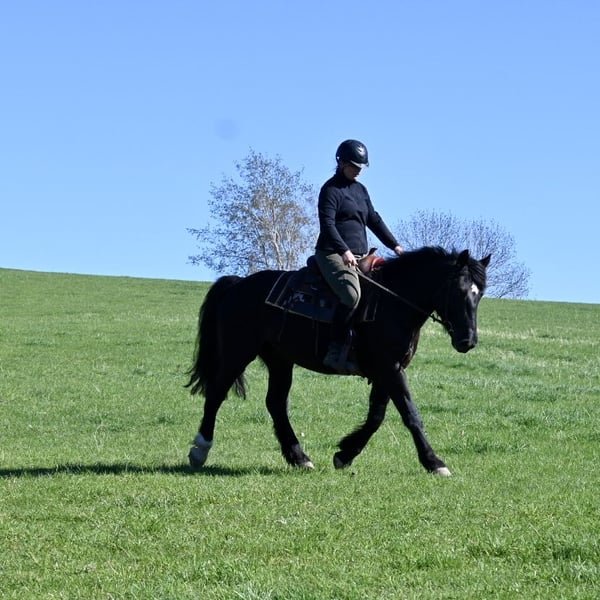 Belinda geboren am 15.05.2021 ca 1,60 m ist eine kräftige ausdrucksstarke Rappstute mit einem unglaublich feinen Gespür für ihren Menschen. Sie ist ein ganz besonders liebes und sensibles Pferd das gefallen möchte. Sie ist angeritten und gefahren und zeigt sich unter dem Sattel brav. Sie buckelt nicht und geht nicht durch. Dennoch steht sie noch am Anfang ihrer Ausbildung und ist kein Anfängerpferd. Sie braucht einen ruhigen erfahrenen Menschen der ihr Sicherheit gibt und sie liebevoll aber konsequent weiter fördert. Im Umgang ist Belinda sehr menschenbezogen aufmerksam und fein. Sie bindet sich eng und sucht die Nähe. Mit Geduld hat sie bei uns viel Vertrauen aufgebaut und entwickelt sich stetig weiter. Belinda lebt im Offenstall mit durchgehendem Zugang zu Heu was ihr sehr gut tut und beibehalten werden sollte. Abgabe nur weil wir ihr aktuell nicht die Zeit und individuelle Förderung geben können die sie verdient. Wir wünschen uns für sie ein liebevolles erfahrenes Zuhause in dem sie ankommen darf und weiter wachsen kann.