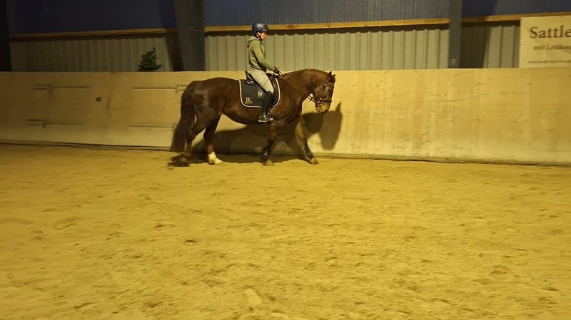 Ich verkaufe eine 9-jährige Fuchsstute im schweren Typ stehend. Sie ist 155 cm groß. Wir haben sie als kindergeeignetes Anfänger-Familienpferd gekauft. Nach 5 gemeinsamen Monaten mussten wir feststellen, dass ihr dieser Job keine Freude macht. Sie hat eine gute Rittigkeit und ist fein am Schenkel. Sie benötigt einen Reiter, der ihr klare Anweisungen und Sicherheit gibt. Dann bekommt man ein Pferd, dass motiviert mitarbeitet, egal ob Dressur-/ oder Springaufgaben. Sie ist mit Stuten verträglich, artig beim Schmied und Tierarzt. Sie wurde regelmäßig geimpft und entwurmt. Im Juli osteopathisch durchgecheckt und im August Zähne frisch gemacht. Videos können bei Interesse geschickt werden. Passendes Zubehör (u.a. Maß-Dressursattel) kann gegen Aufpreis mit erworben werden. Ich wünsche mir für sie eine feste Bezugsperson, die mit ihr zusammen wachsen möchte.