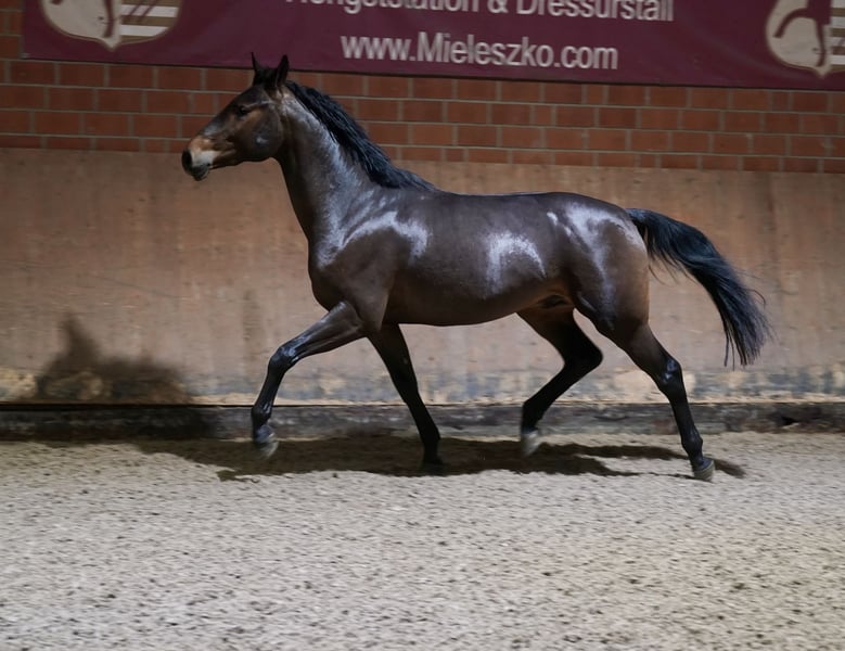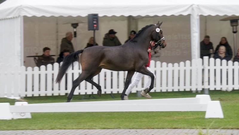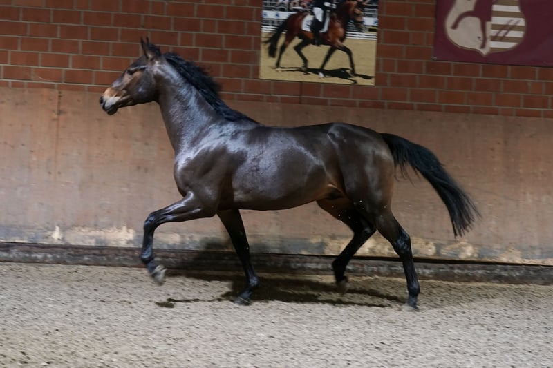 Giant XXL Pony Stallion – Perfect for Dressage! For sale is a stunning dark bay German Riding Pony stallion, born in 2023. Standing at 154 cm, he combines classic pony elegance with great potential for dressage. His friendly nature and impressive presence make him an ideal partner for ambitious riders seeking a talented young horse. The stallion's dam, Dana, was a multiple winner in S-level dressage competitions up to Inter II. She is a sister to the double world champion and Olympic silver medalist Damon Hill NRW. The international Grand Prix winners SAP Freudtänzer and Wisdom are also offspring of Dana — showcasing top-tier performance genetics! This young stallion is already well-backed and demonstrates considerable talent along with a promising basic training. He is healthy, regularly dewormed, and vaccinated. If you are interested or would like more information, please feel free to contact me. Visits can be arranged by appointment. Look forward to an exceptional pony horse that, with lots of love and potential, awaits his future owners!