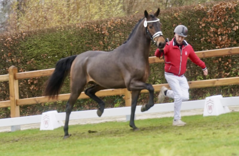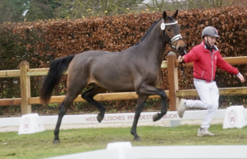 Poney de dressage XXL, entier, de grande taille – parfait pour la compétition ! À vendre : un magnifique poney de dressage allemand, bai, né en 2023. Avec une hauteur au garrot de 154 cm, il allie l’élégance typique du poney à un potentiel exceptionnel pour la discipline de dressage. Son tempérament amical et son apparence impressionnante en font un partenaire idéal pour les cavaliers ambitieux à la recherche d’un jeune talent prometteur. La mère du poulain, Dana, a été une gagnante en séries en dressage S jusqu’à Inter II. Elle est la sœur du double champion du monde et médaillée d’argent aux Jeux Olympiques, Damon Hill NRW. Les vainqueurs internationaux de Grand Prix, SAP Freudtänzer et Wisdom, sont également des descendants de la mère – une génétique de haut niveau pour la performance ! Le jeune entier est déjà bien manipulé à l’attache, montre beaucoup de talent et possède une base solide en dressage. Il est en bonne santé, régulièrement vermifugé et vacciné. Pour toute question ou information complémentaire, je reste à votre disposition. Une visite sur place peut être organisée sur rendez-vous. Préparez-vous à découvrir un poney exceptionnel, qui attend avec beaucoup d’amour et de potentiel ses futurs propriétaires !