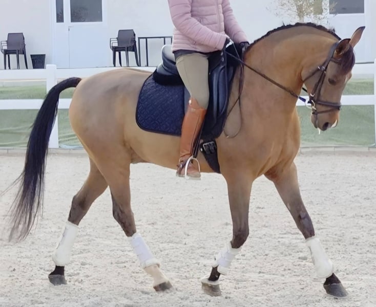 ⚜️ À vendre ⚜️🔝🔝🔝 💎 Cheval « Hispano-Arabe » de Capricho 💎 Excellent cheval hispano-arabe à 50 % de robe baie, castré, bien construit, sain et parfaitement entretenu. Une véritable œuvre d’art, âgé de 10 ans, mesurant 1,58 m au garrot. Unique par sa morphologie et sa robe, mais aussi par son caractère exemplaire. Habitué à tout et à l’épreuve des bombes, toutes les tests possibles lui sont acceptés. Bon en tout, avec beaucoup de cœur, sérieux et bien monté : pas, trot, galop, appuis dans les trois allures, cessions, pas arrière, demi-tours, pirouettes directes et inverses, pirouettes au galop, épaules en dedans, face au mur, changement isolé… Un cheval très bien dressé, avec un pas spectaculaire, qui ne recule ni ne s’échauffe avec d’autres chevaux. Cheval doux, adapté à tout amateur ou à quelqu’un cherchant un cheval pour loisirs, foires, pèlerinages, balades, randonnées, équitation de travail, école… et pour profiter d’un bon cheval polyvalent, idéal en classique comme en vaquero. 👉 Plus d’informations en privé. 📍 Localisation : Madrid (Espagne) 🇪🇸 📹 Vidéos disponibles