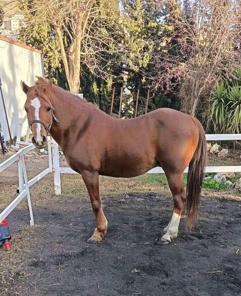 Poni muy noble nontado en pista y de paseo. Iniciado sl salto hace poquito. Sociable y acostumbrado a estar en paddock con otros ponis