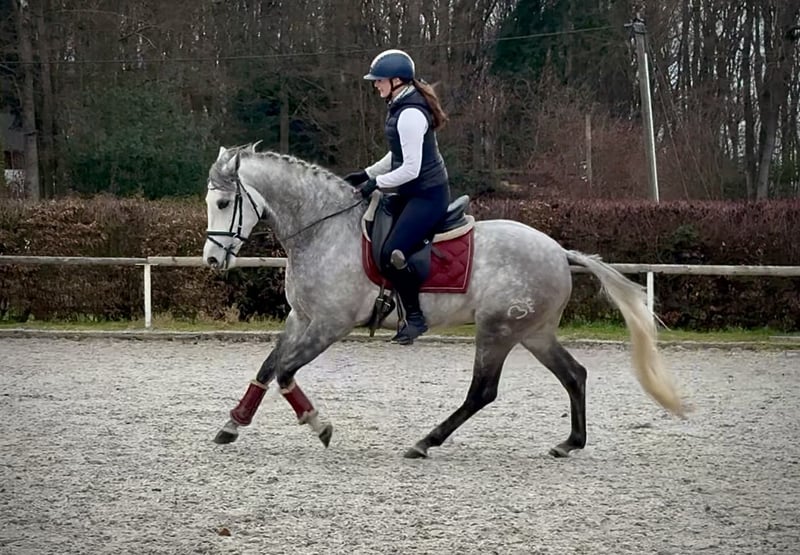 Name: Orfebre MG Breed: Hispano-Arabian Gender: Gelding Date of Birth: June 25, 2021 Age: 4 years Height: 15.4 hh Color: Grey (Skewbald) Pedigree: With pedigree certificate Temperament: People-oriented, eager to learn, reliable, patient, curious, intelligent, brave Training/Suitability: ridden, dressage, leisure riding, trail riding, endurance, working equitation Trail Experience: dependable, fearless, resilient, calm under pressure, suitable for solo and group rides Health: dewormed, vaccinated, barefoot, eczema-free, teeth checked, osteopathically treated Stabling: Box stall, open stable Special Features: very good basic gaits, farrier- and loading-friendly, herd-compatible Please note that the above characteristics are based on our personal assessment and do not constitute a guarantee. Price: €8,500 (gross) Has he caught your interest? To give you a better impression of Orfebre, we would be happy to send you a riding video. We are also available for a detailed description of the horse, personal consultation, and to answer all your questions by phone. Feel free to contact us anytime via WhatsApp or call us at: +49 151 19487595 Our phone hours are daily from 7:00 AM to 1:30 PM and again from 8:00 PM. We look forward to hearing from you! A clinical or radiological pre-purchase examination can be performed by your veterinarian of choice. Of course, Orfebre can be delivered safely and comfortably to his new home. We handle all necessary preparations and transportation so that your new horse arrives stress-free, well cared for, insured, and in good health. Currently, we offer a carefully selected range of horses for sale. With us, you are sure to find your dream horse. Visit us also on our website: www.marvinsroyalhorses.de Dear customers, we are happy to introduce you to our horses and offer grooming, tacking, lunging, ground work, as well as trial riding in the riding hall, on the arena, or in the field to get to know your new family member better. The cost is €40 per horse, with each additional horse €30, and will be refunded upon purchase. Our address: Ferdinand Grube 50 53577 Neustadt-Wied Google Maps: marvinsroyalhorses