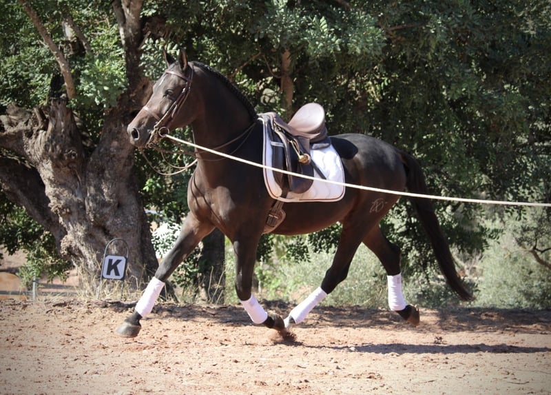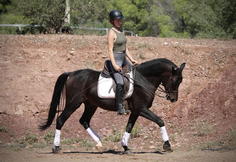 Absolutely reliable, this handsome gelding in a dark coat, both in the arena and in the field! TROYA is a loyal companion in all aspects of life, friendly, easy to ride, well-mannered, and compatible with other horses… there are hardly any positive qualities that do not apply to this wonderful gelding. Only a loving home is now missing for his big happiness! So, who would like to offer this handsome guy a great place? TROYA is correctly ridden in the basic gaits, understands shoulder-in and leg-yield, and is still being professionally trained by me. He also goes very well in a group but is equally confident when ridden alone in the terrain. TROYA is a Hispano-Arabian with a Spanish passport. Location: Valencia, Spain.