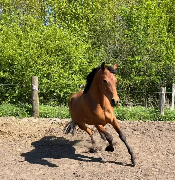 Por motivos de salud, lamentablemente, tenemos que separarnos de nuestra Leyla. Leyla es una yegua joven y enérgica, muy dispuesta a aprender y trabajar, pero también necesita una mano firme y consistente. Nació en España y allí creció en un grupo de yeguas. A los casi 2 años, llegó a Alemania, donde también fue criada de manera adecuada y respetuosa. Está bien educada, aunque requiere algo de tiempo para adaptarse a nuevas situaciones y personas. Recientemente hemos comenzado su entrenamiento de forma muy suave, y ella colabora muy bien, mostrando incluso entusiasmo por las tareas. Ha sido montada, por lo que conoce la presencia del jinete, tanto como yegua de mano como en la monta ligera, incluso en el campo sin guía, con un poco de experiencia. Paralelamente, trabajamos en el círculo de entrenamiento y en la pista. Leyla es completamente compatible con otros caballos en la manada. Es una joven potra con un potencial enorme. Nos gustaría seguir apoyándola en su desarrollo, pero problemas de salud imprevistos nos impiden hacerlo. No es una yegua para principiantes.