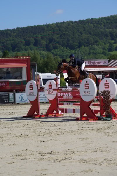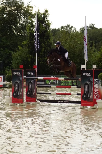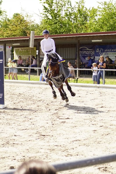 Seine leistungsbereite Einstellung und Power machen ihn im Parcour zu einem Kämpfer. Daher ist er kein reines Anfängerpferd.