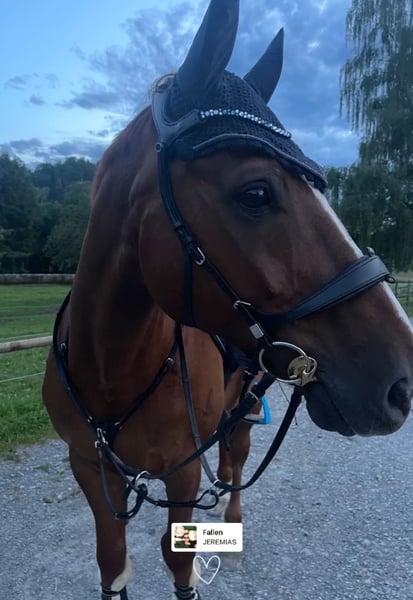 Fünf Sterne zuhause gesucht für Holsteiner/Hannoveraner Wallach. Copa ist ein sehr lieber Wallach, er braucht seine Zeit bis er seinem Besitzer vertraut, aber wenn er mal vertraut macht er alles für dich ! Er geht sehr gerne lange ins Gelände, ob in der Gruppe oder alleine. Copa macht aber auch auf dem Sand immer steht’s eine schöne Figur und gibt sich immer sehr viel Mühe. Er hat Spass am Springen, das aber weder hoch noch auf dem Turnier! Es war eine sehr schwere Entscheidung Copa weiter zu geben, deshalb wird er auch nur in gute hänge weiter gegeben. Bitte nur bei ehrlichem Interesse melden! Über diese Nummer immer erreichbar: 0791360992