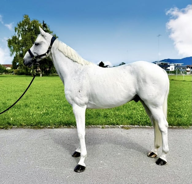 Hübscher Holsteiner Schimmel – S-platziert mit enormer Sprungkraft Zum Verkauf steht mit Hui Buh RL ein bildschöner Holsteiner Wallach (geb. 12.04.2014) mit einem Stockmass von 166 cm. Er besticht durch seine sportliche Eleganz und eine beeindruckende Sprungkraft. Sportliche Highlights: Hui Buh ist ein echtes Kraftpaket und verfügt über grenzenloses Vermögen. Er führt mütterlicherseits das wertvolle Blut der Springpferdelegende Cassini I, was sich in seiner enormen Kapazität am Sprung widerspiegelt. Hui Buh wurde von einem Amateur bereits erfolgreich in Springprüfungen bis zur Klasse S (140 cm) platziert*. Aktuell wird er in kleineren Prüfungen vorgestellt. Er ist dressurmässig sehr gut gearbeitet, fein zu reiten und zeigt am Sprung eine gewaltige Sprungkraft. Gesundheit: Ein aktueller TÜV mit Röntgenbildern ohne Befund liegt vor. Charakter & Wesen: Hui Buh ist ein sehr menschenbezogener, temperamentvoller, aber sensibler Typ, der eine ruhige Führung schätzt. Er ist kein Pferd für Hektik, sondern sucht einen Menschen, der ihm Sicherheit gibt. Im Umgang: Absolut unkompliziert – geduldig beim Scheren sowie schmiede- und verladefromm (fährt brav Hänger und ist einfach zu verladen). Im Gelände: Eine Lebensversicherung! Er ist verkehrssicher und läuft mutig an allem vorbei. Da er anderen Pferden gegenüber etwas misstrauisch ist, geniesst er Ausritte alleine sehr und ist dabei besonders entspannt. Eckdaten auf einen Blick: Name: Hui Buh RL Abstammung: Hermes d’Auth x R-Caotina (v. Cassini I) Stockmass: 166 cm Erfolge: S*-platziert (140 cm) mit einen Amateur Hui Buh ist der ideale Partner für ambitionierte Reiter, die ein hübsches Sportpferd mit viel Herz und Qualität suchen.