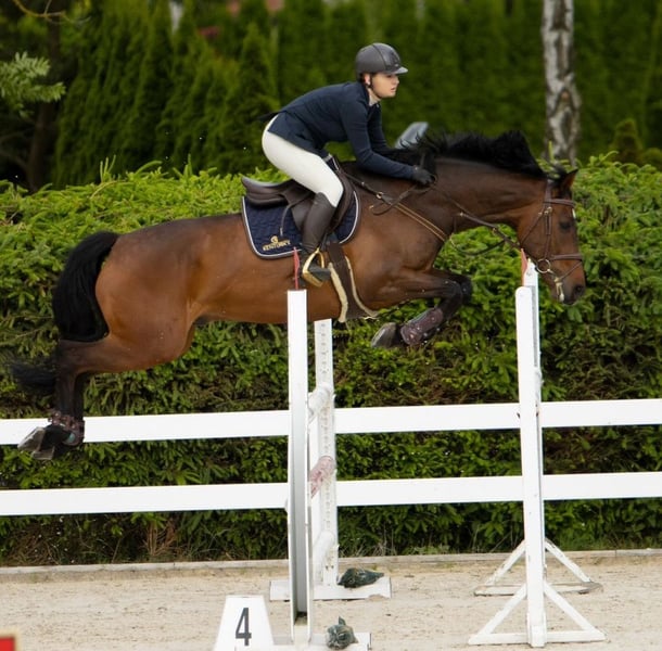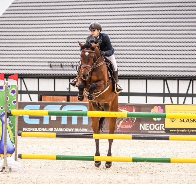Niestety jestem zmuszona sprzedać mojego ukochanego konia, 13 letniego wałacha. Cartago ma ok. 173cm w kłębie. Jest całkowicie zdrowy, chodzi na padoki, jest kuty na 4. Startował do 130cm na treningach naskakany do 140cm. Startował w zawodach ogólnokrajowych jaki międzynarodowy. Cartago jest bardzo równy i pewny, niczego się nie boi i nigdy nie odmawia skoku, bardzo pomaga, nawet jeżeli odpięcie nie pasuje to sam pomyśli i będzie po drugiej stronie. Potrafi podstawowe figury ujeżdżeniowe: łopatki, ustępowania, zmiany nóg, kontr galop itp. Idealnie nada się żeby wprowadzić w wyższe konkursy, zrobić drugą klasę sportową lub przesiąść się z kucyka na dużego konia. Niema żadnych nałogów i narów. Jest bardzo przyjazny i lubi uwagę człowieka, przy kowalu i weterynarzu to anioł nic nie robi. Jeździł w przyczepie i koniewozie, wchodzi bez żadnego problemu. Jeżeli jesteś zainteresowany zapraszam do kontaktu telefonicznego na nr. 790 626 232
