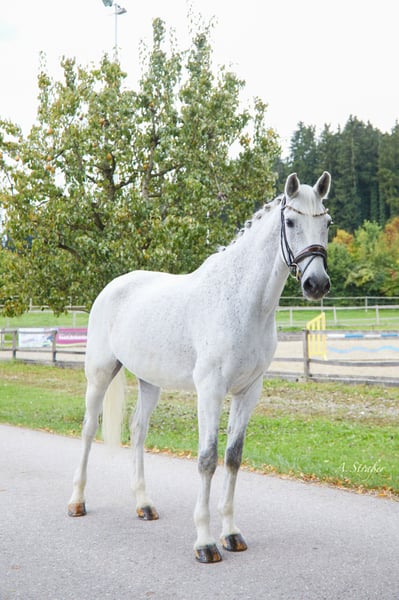 Zum Verkauf steht ein bildhübscher und äußerst qualitätsvoller 13-jähriger, ca. 173 cm großer Holsteiner Wallach von Catoo x Mayflower. Der Wallach ist bis Intermediare I ausgebildet und kann Erfolge bis S** am Turnier vorweisen. In der letzten Saison fungierte er als Lehrmeister für ein junges Mädchen, welches er innerhalb kürzester Zeit von A bis S getragen hat. Ausgestattet mit drei hervorragenden Grundgangarten sowie einer außergewöhnlichen Arbeits- und Leistungsbereitschaft, bringt der Wallach alles mit, was das Sportreiterherz begehrt. Cantando ist sehr einfach zu reiten, in jeder Hinsicht unkompliziert und verzeiht auch Reiterfehler. Mit Piaffe, Passage sowie Einerwechsel wurde begonnen - somit ist der Wallach durchaus ein potenzielles Grand Prix Pferd. Auch im Umgang ist er absolut brav, menschenbezogen und verschmust. Natürlich kennt unser Schimmi auch das Ausreiten und ist auch hierbei ein Verlasspferd! Ebenso schmiede- und verladefromm. Ausschließlich aufgrund von Zeitmangel (Studium) schweren Herzens an Bestplatz zu verkaufen! Eine AKU inkl. Röntgenbilder ohne Befund aus 2023 liegt vor! Anfragen bei ernsthaftem Interesse bitte nur telefonisch oder per WhatsApp unter +49 176 46187186