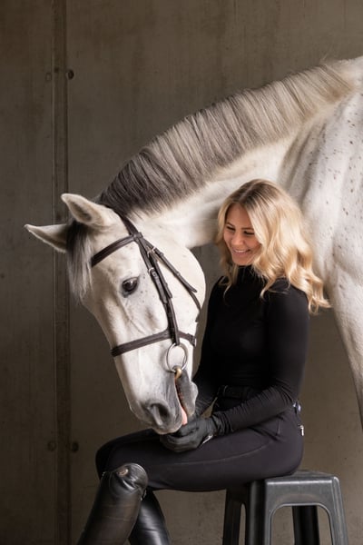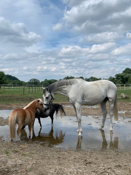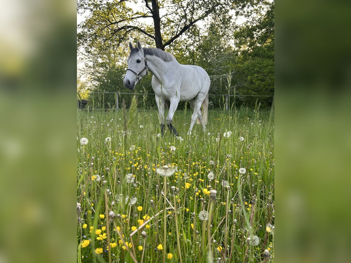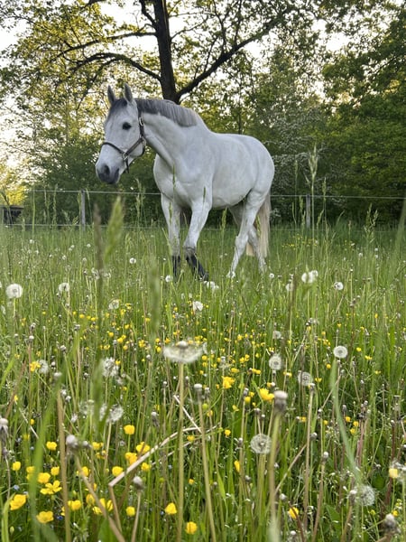 Corby is a 14-year-old grey gelding with a big heart and a very special character. I purchased him at age 7 with the goal of competing in show jumping at the sport horse level. In the first two years, we successfully competed in jumping classes of levels L and M. Unfortunately, Corby then sustained a suspensory ligament injury in his front leg. After a lengthy rehabilitation process with continuous veterinary care, I gradually reintroduced him to training. Despite all efforts, he was never completely free of discomfort. To give him a proper rest, Corby was turned out in a small herd in an open stall for about 10 months, completely without work. This period was very beneficial for both his mental and physical well-being. After this break, I carefully started retraining him and built him up again. In early 2025, he was able to successfully compete at the L level in show jumping. However, in summer 2025, he was injured again – this time a tendon injury in his hind leg. This injury was also treated thoroughly, including a 12-week rest. For the past three months, he has been back in regular training and is currently being ridden normally. For the well-being of the horse, I have made the difficult decision to retire Corby from competitive sport. He should no longer be subjected to jumping demands. I wish for him a loving and permanent home where he can enjoy leisure riding in the indoor arena, on the riding school grounds, and in the fields. ❗ Important: Corby is not suitable for riders with ambitions to compete, as he cannot withstand the long-term strain of such demands. Character & Handling: Corby is a very affectionate, people-oriented, and loving gelding. He is farrier- and loading-friendly, has no bad habits in handling, and is accustomed to herd life (suitable for gelding herds). He is not an absolute beginner’s horse, as he can be quite energetic. In daily dressage work, he is very motivated, sensitive, and pleasant to ride. Corby nuzzles at his stable window. Since I have owned him, he has shown no health issues related to this habit. I only place Corby in the best hands – place before price is my motto.