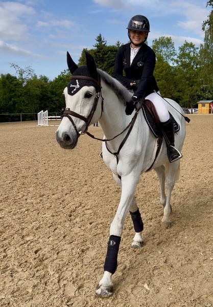 Corby est un hongre gris de 14 ans, doté d’un grand cœur et d’un caractère très particulier. Je l’ai acheté à l’âge de 7 ans avec pour objectif de le faire concourir en saut d’obstacles. Pendant les deux premières années, nous avons participé avec succès à des épreuves de saut en classes L et M. Malheureusement, Corby a ensuite souffert d’une blessure au ligament suspenseur de l’antérieur. Après une longue période de rééducation sous surveillance vétérinaire constante, je l’ai rééduqué en douceur à plusieurs reprises. Malgré toute cette précaution, il n’a jamais été complètement sans douleur sur le long terme. Pour lui permettre de se reposer véritablement, Corby a ensuite passé environ 10 mois au paddock, dans un petit troupeau, sans aucune activité. Ce temps lui a fait énormément de bien, tant mentalement que physiquement. Après cette pause, j’ai tenté une dernière reprise en douceur, et j’ai progressivement remis Corby en forme. Début 2025, il a de nouveau participé avec succès à des concours de niveau L. Cependant, à l’été 2025, il s’est blessé à nouveau — cette fois à un tendon de la jambe arrière. Cette blessure a également été traitée de manière rigoureuse, avec une pause de 12 semaines. Depuis trois mois, il reprend un entraînement régulier et est monté normalement. Pour le bien du cheval, j’ai décidé de le retirer du sport de compétition. Il ne doit plus être soumis à des charges de saut. Je souhaite lui offrir un foyer aimant et durable, où il pourra être monté en loisir en manège, sur le terrain et en extérieur. ❗ Important : Corby n’est pas adapté à des cavaliers ambitieux en compétition, car il ne supporte pas une charge prolongée. Caractère et comportement : Corby est un hongre très câlin, proche des humains et affectueux. Il est ferré et chargé sans problème, ne présente aucune mauvaise habitude en manège ou en troupeau (il convient pour un groupe de hongres). Ce n’est pas un cheval pour débutants, car il possède une certaine énergie. En dressage quotidien, il se montre motivé, fin et agréable à monter. Corby tête à sa fenêtre de box. Depuis que je le possède, il n’a jamais eu de problème de santé lié à cette habitude. Je confie Corby uniquement à des personnes de confiance — la priorité est donnée au bon endroit, pas au prix.