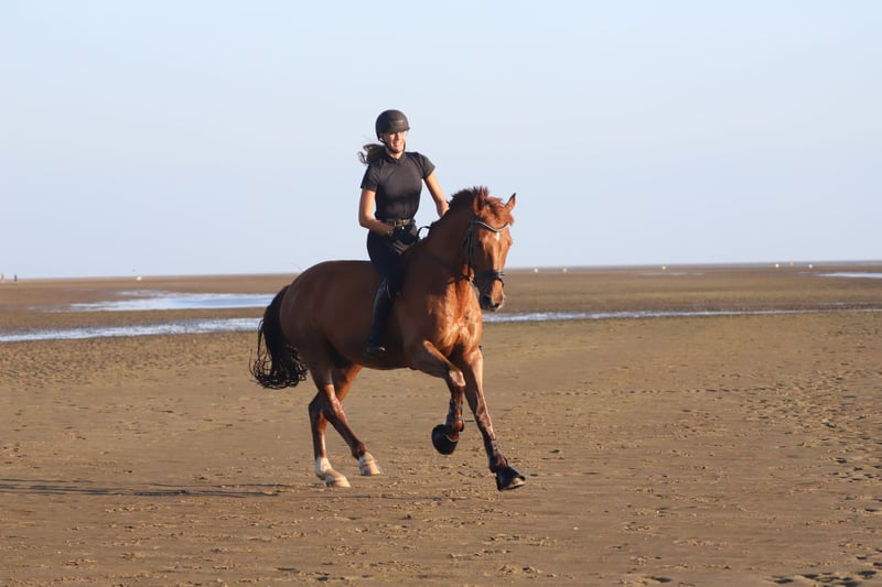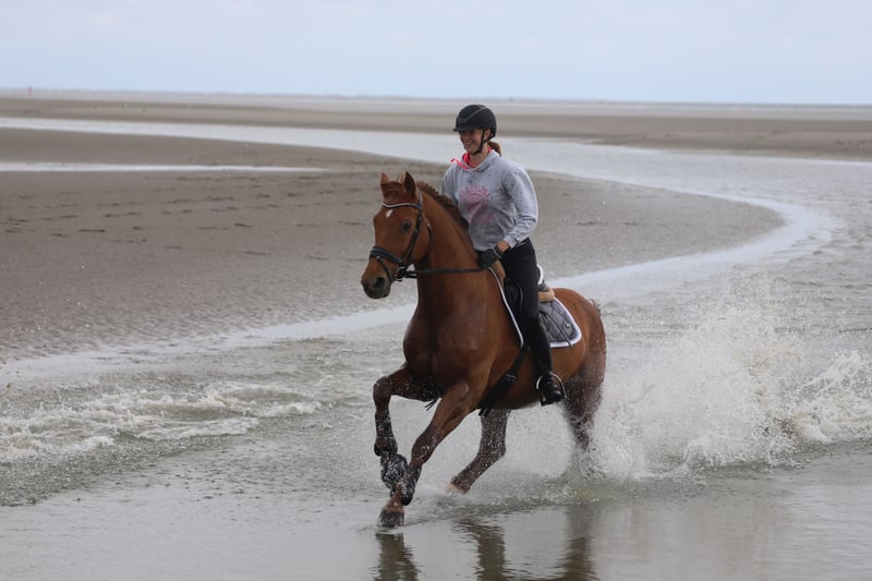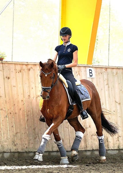 He impresses with his absolute reliability and gentle nature – always well-behaved both in daily handling and under saddle. Whether for dressage work, hacks, or beach rides (even without a saddle), Fuchsi remains calm, motivated, and is always a dependable partner.