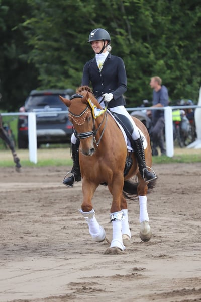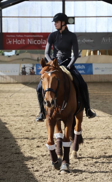 Fuchsi has been in our possession since 2020, was born in 2011, and has been carefully trained by us. He has been promoted up to S-level dressage and has achieved wins in M** level as well as in the FEI Junior Tour.