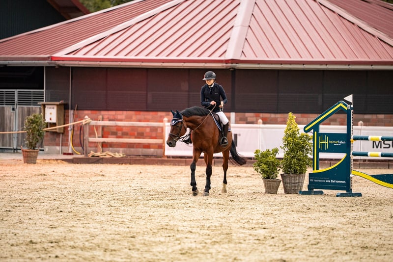 Felix is at home on the course over the colorful poles. Then he blossoms and is full of motivation. In handling, Felix is always calm and composed; nothing can ruffle his feathers. He easily pulls a trailer, is well-behaved with the blacksmith and veterinarian, and gently educates our young horses with friendly consistency in the open stable. Felix is familiar with life in a herd in the paddock as well as in box stall housing. For a relaxed ride in walk or a sporty gallop through the woods, Felix is happy to be persuaded. But his favorite is jumping with a lively forward rhythm, which he does with enthusiasm, combined with an overview and speed that make hearts race. If you want to be in front in a jump-off, Felix is the perfect partner in crime. If you would like to meet Felix in person or learn more, please feel free to send a WhatsApp or SMS in advance!