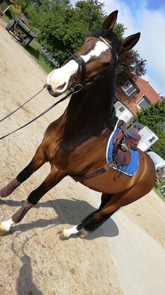 Nach langem Vor-mir-Herschieben habe ich mich nun dazu entschlossen, meinen geliebten Crawano in beste Hände abzugeben. Crawano ist ein 16-jähriger Holsteiner Wallach und ca. 176 cm groß. Ein großrahmiges Pferd, das durch seine bloße Erscheinung jedes Herz höher schlagen lässt. Besonders hervorzuheben ist dabei sein toller Charakter. Er besticht mit einer sehr freundlichen und aufgeschlossenen Art, mit der er es schafft, jeden um den Finger zu wickeln. Er kann mehrere Platzierungen bis zu Springprüfungen der Klasse S vorweisen. Mit viel Power ausgestattet, bleibt er immer klar im Kopf und gut zu händeln. Nach einer Sehnenverletzung mit darauffolgender OP hat er einige Jahre auf der Koppel verbracht. Letztes Jahr habe ich ihn wieder angeschoben (oder: antrainiert), dabei war er lahmfrei und absolut leistungsbereit. Mein Traum war es eigentlich immer, nochmal gemeinsam in den Turniersport zurückzufinden. Aufgrund von Zeitmangel und dem Gefühl, dass es ihm gegenüber nicht fair ist, habe ich ihn im Sommer dann doch wieder mit seiner Herde auf die Sommerkoppel gestellt. Seit seinem 2. Lebensjahr lebt er mit der Diagnose Shivering. Dies hat ihn bislang aber nicht eingeschränkt - Rückwärtsrichten, Anhängerfahren oder Hufschmied haben nie Probleme bereitet. Es ist kein Notverkauf. Ich möchte einfach die Chance nutzen, ihm so vielleicht ein noch schöneres Zuhause bieten zu können, in dem er die Aufmerksamkeit bekommt, die er verdient hat.