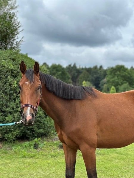 Questo giovane castrone si distingue per le sue eccellenti qualità di movimento e il suo carattere equilibrato e amichevole. È ben educato, mostra già promettenti capacità di affrontare gli ostacoli. È ben montato, leggero ai gambi e tranquillo sotto la sella.