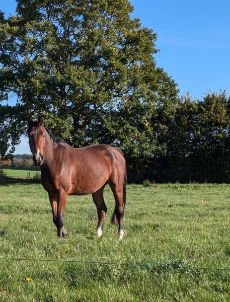 Er ist gut angeritten, brav unterm Sattel und hat schon seine ersten Sprünge gemacht.