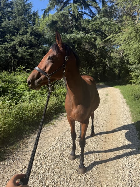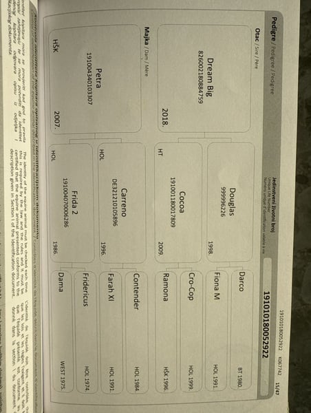 Despacito (Neo) Holsteiner x KWPN Talented young gelding with excellent pedigree, a clear head, and a wonderful character. Despacito, known as "Neo," is a 3-year-old gelding (turning 4 this year) with proven Holsteiner and KWPN bloodlines. His lineage includes Dream Big – Douglas – Darco, as well as maternal lines featuring Carreno – Contender—lines with high sporting potential and international jumping bloodlines. Neo has been gently and age-appropriately backed. He is very eager to learn, attentive, and shows a lot of joy in work. Training level: • Secure in all three basic gaits • Transitions clear and reliable • Lateral work (shoulder-in) developed age-appropriately • Balanced, well-regulatable canter • Jumping development is age-appropriate (shown in video with 60 cm) • Confident in small courses under saddle Reliable in the field, both alone and in a group, also capable of leading. In daily handling, exceptionally friendly, social, and uncomplicated. Health: • Regularly vaccinated • Wolfs teeth removed in October 2024 • Barefoot • Pre-purchase exam available Due to personal reorientation, he is being offered into capable hands. +385 99 1675 599 – reachable via WhatsApp or phone