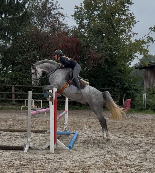 **Sales Advertisement: Holsteiner Gelding** For sale is a talented Holsteiner gelding by CLARIMO / CORNET OBOLENSKY. This elegant grey stands at approximately 169 cm and impresses with his excellent jumping quality. A valuable raw diamond looking for his rider for the perfect finishing touches. He shows great potential and is suitable for both the ambitious rider and the experienced athlete seeking a promising partner for competitive sport. He not only captivates with his athletic abilities but also with his friendly character and uncomplicated nature. The gelding is well-behaved, easy to handle, and has a pleasant temperament. If you are interested or have any further questions, we look forward to your message!