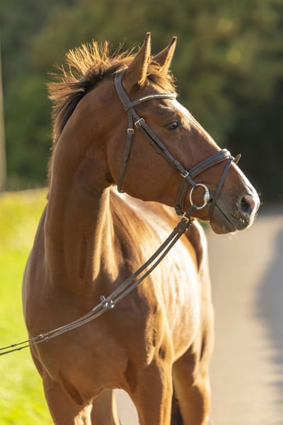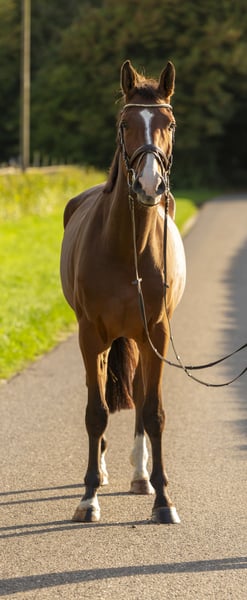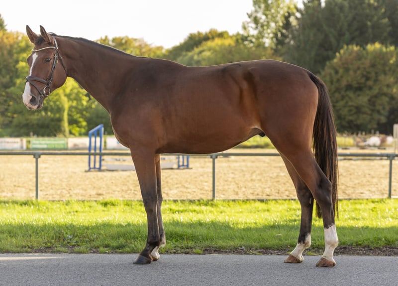 Qwertys is a 4-year-old bay gelding sired by Quidam de Revel out of Contender x Lancer III. - Very well-behaved and easy to handle - Suitable for riding school use - Clears individual jumps - Trail riding poses no problem - Has been introduced to the blacksmith - Experienced in trailer loading
