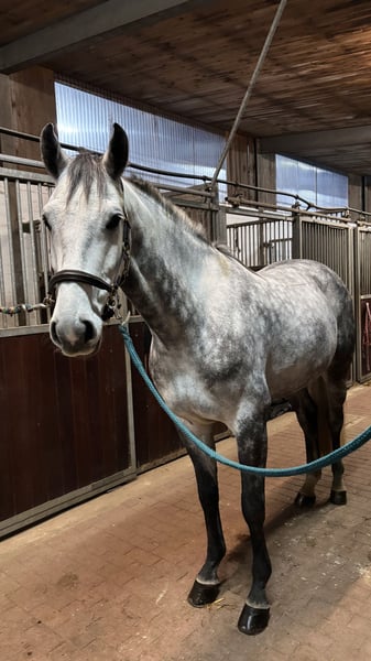 This wonderful grey gelding impresses with his intelligence and impeccable character. He is extremely light in the bridle, making him a pleasure to ride both in jumping and in daily dressage work. He is experienced in trail riding and demonstrates his calmness and resilience even in the terrain. We are looking for a sensitive rider who is eager to train a young horse with patience and calmness. If you are interested or have any questions, please feel free to contact us at 0177 2409954