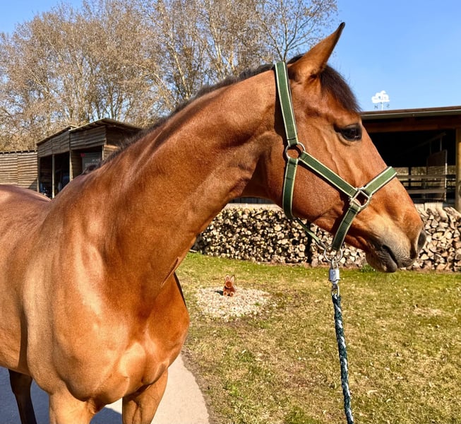 Giovane cavallo molto promettente e ben sviluppato, che ha già vinto più volte in salto a 1,15 m. È un atleta ambizioso, dotato di tre ottimi ganci gamba. Nel quotidiano si mostra molto mansueto. Un partner affidabile per le discipline di salto, che offre ancora molto potenziale di crescita e qualità per compiti di alto livello. Se interessati, sono a vostra disposizione per contatti. Telefono: +49(0)171/4605744