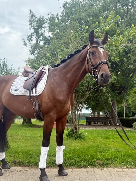 **Annuncio di vendita: Cavallo castrato Holsteiner in vendita** Offriamo un promettente e talentuoso cavallo castrato Holsteiner in vendita. **Caratteristiche:** - **Razza:** Holsteiner - **Sesso:** Castrato - **Anno di nascita:** 2019 - **Colore:** Baio - **Altezza al garrese:** 170 cm - **Idoneità:** Salto ostacoli „Otto“ è già stato piazzato in prove di salto per cavalli di classe A con un punteggio di 8,0. Questo promettente castrato si distingue per la sua capacità di salto, la sua equitazione e le sue buone andature. Grazie al suo carattere eccezionale, è assolutamente adatto anche a cavalieri meno esperti/giovani. Buona attuale certificazione radiografica disponibile. Video possono essere inviati su richiesta. Se siete interessati o avete ulteriori domande, saremo felici di ricevere un vostro messaggio! Preferibilmente telefonicamente o via WhatsApp.