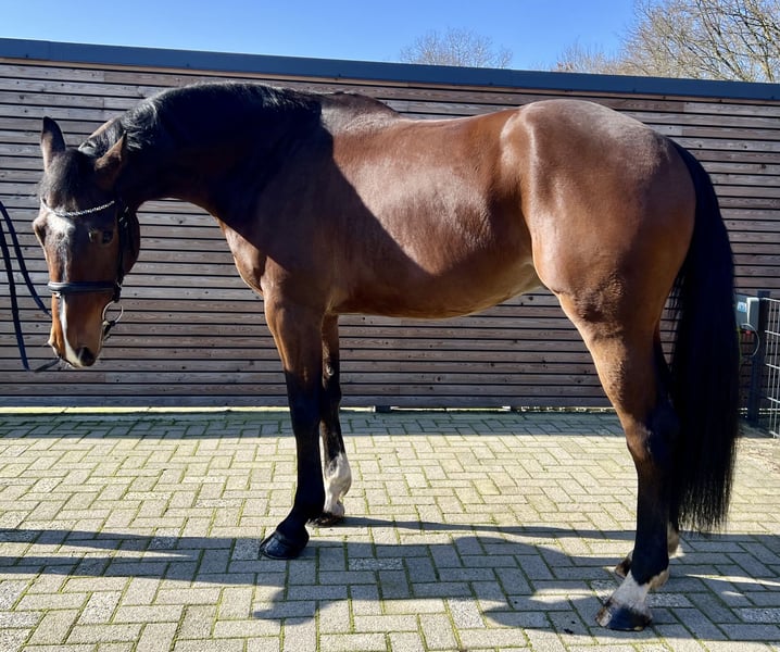 **Verkaufsanzeige: Holsteiner Wallach – Vielseitiger Wallach mit Potenzial** Zum Verkauf steht ein vielversprechender Holsteiner Wallach, geboren im Jahr 2020. Mit seinem eleganten braunen Fell und einer Größe von 170 cm ist er ein beeindruckender und harmonischer Sportpartner. Der Wallach überzeugt durch seine solide Grundausbildung im Springen und zeigt bereits erste vielversprechende Ansätze in der Springdisziplin. Er verfügt über drei überdurchschnittliche Grundgangarten. Bei seiner ersten Springpferdeprüfung erhielt er direkt die Wertnote 8,1. Sein athletischer Körperbau und sein gut bemuskelter Körperbau bilden die ideale Basis für die weitere Ausbildung im Springsport. Der Holsteiner ist gut geritten, aufmerksam, lernwillig und will stets auf die andere Seite. Seine springtechnischen Fähigkeiten sind vielversprechend und er zeigt sich bereits in der Grundausbildung sehr talentiert und lernwillig. Der Wallach ist gesund, regelmäßig entwurmt und frei von bekannten gesundheitlichen Problemen. Er eignet sich sowohl für ambitionierte Nachwuchsreiter im Springen als auch in der Vielseitigkeit für erfahrene Reiter, die einen zuverlässigen Partner suchen. Dank seiner ruhigen Ausbildung direkt vom Züchter und seines freundlichen Charakters lässt er sich gut im Umgang führen und ist sowohl beim Training als auch im Turniersport ein leistungsbereiter Partner. Bei Interesse oder weiteren Fragen stehe ich gerne für eine Besichtigung und Proberitte zur Verfügung. Ein echtes Springtalent mit viel Potenzial wartet auf einen neuen, engagierten Reiter!