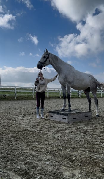 Holsteiner ruin – Cio can fly (geb. 2019, Clearway x Casall) We bieden onze vriendelijke en brave Holsteiner ruin "Cio can fly" te koop aan. Cio is geboren in 2019 en toont zich altijd onbevreesd, dapper en vriendelijk in de omgang. Wat maakt Cio bijzonder: * Buitenrit: Cio is een betrouwbare partner voor ontspannen buitenritten. Hij is bij ons altijd goed handelbaar en eenvoudig te rijden als handpaard of onder de ruiter geweest. * Grondwerk: Met plezier, moed en motivatie toont hij zich bij het grondwerk, aan de longe en tijdens het grondwerk. Hij leert zeer snel en is altijd gemotiveerd. Wij hechten waarde aan transparantie – Cio heeft een lichte gang, een stand van tien vingers vooraan met een daarbij horende afwijking in het fetlockgewricht linksvoor, en iets zwakkere pezen achteraan bij de knie. Door gerichte grondwerktraining kunnen de pezen versterkt worden en de afwijking verbeterd. Wat Cio nodig heeft: Vanwege zijn diagnoses heeft Cio een meer ervaren eigenaar nodig die bereid is hem te ondersteunen met gerichte spieropbouw en houdingcorrectie, om hem op de lange termijn belastbaar te maken. Momenteel wordt hij bij ons op de piste niet bereden, omdat hij hier onzeker is. Met een tweede persoon op de grond gaat het echter al goed. Als je op zoek bent naar een trouwe vrijetijdspartner en de uitdaging niet uit de weg gaat om Cio te begeleiden op zijn weg, neem dan gerust contact op! Hij zoekt een nieuw thuis vanwege onverwachte veranderingen aan mijn zijde, waardoor hij helaas tekort komt.
