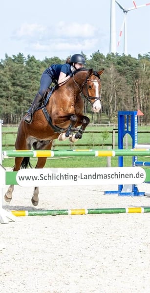 Este caballo de 7 años es el compañero ideal para el jinete aficionado ambicioso o para el ocio. Tiene una mente muy clara, es muy valiente y relajado, tanto en casa como en competición. También es perfecto para un jinete que pase de ponis a caballos o para jóvenes jinetes. Es fácil de montar y un encanto en el manejo. El caballo ha competido en salto de obstáculos en categoría L, en saltos L y en campo a través A. No se asusta con nada, siempre quiere saltar y es muy versátil. Un caballo con el que la diversión y la variedad están garantizadas. Más información y vídeos a petición.