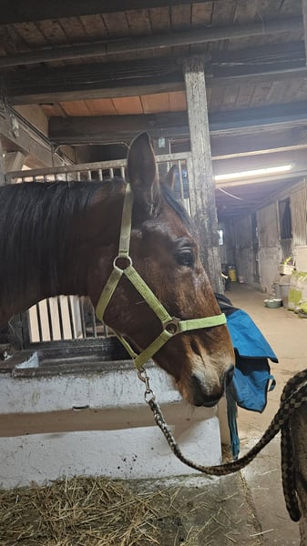Je recherche une nouvelle famille pour mon adorable hongre Holsteiner de 8 ans. Il mesure environ 1,70 m et possède une lignée de saut d’obstacles. Il est toujours sage à monter et souhaite faire plaisir. Il a une formation de base en dressage et nous faisons actuellement du travail avec des barres au sol, qu’il adore. Il se montre également sûr en extérieur, seul ou en groupe. Lors des sorties, il est fiable et facile à manipuler. En main, il nécessite une conduite claire et cohérente, alors il se révèle être un partenaire fiable et agréable. Avec la bonne personne, c’est un cheval formidable pour des cavaliers ambitieux souhaitant continuer à développer ses qualités. C’est un cheval exceptionnel, plein de potentiel pour la compétition comme pour le loisir. Malheureusement, je ne peux pas lui consacrer le temps qu’il mérite, c’est pourquoi je suis à la recherche d’un foyer 5 étoiles pour lui.