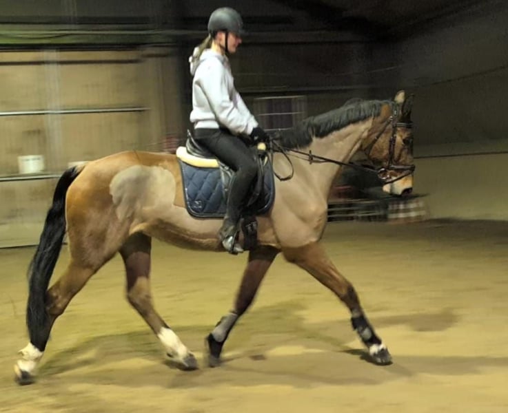 Ich suche ein neues Zuhause für meinen süßen, 8-jährigen Holsteiner Wallach. Er ist ca. 1,70 m groß und hat eine Springabstammung. Er ist immer brav zu reiten und will gefallen. Er hat eine Grundausbildung in Dressur und wir machen aktuell Stangentraining, woran er großen Spaß hat. Er geht ebenfalls sicher alleine und in der Gruppe ins Gelände. Dort ist er zuverlässig unterwegs und lässt sich gut handeln. Im Umgang benötigt er eine klare und konsequente Führung, dann zeigt er sich als verlässlicher und angenehmer Partner. Mit der richtigen Bezugsperson ist er ein tolles Pferd für ambitionierte Reiter, die seine Qualitäten weiter fördern möchten. Er ist ein tolles Pferd mit viel Potenzial für Sport und Freizeit, dem ich leider aufgrund von Zeitmangel nicht gerecht werden kann und deshalb auf der Suche nach einem 5-Sterne Zuhause für ihn bin.