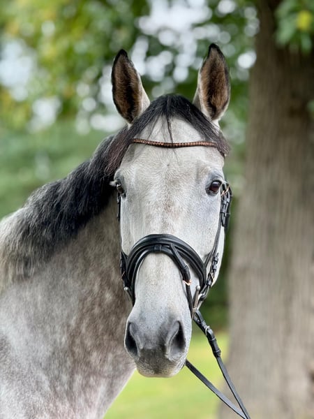 Quarzit is a true gem! He remains calm and well-behaved during grooming, in the wash stall, and when mounting, even without being tied. On the arena, he stays unshaken by ducks, dogs, cats, chestnuts falling from the trees, or flags fluttering in the wind. Children's shouting and kids on tractors passing by with loud drumming are no problem for him. He responds easily to aids and is well-suited for riders with less experience. He loads onto the trailer very politely and stands quietly alone. He is very affectionate and enjoys human company. Excellent X-ray results are available. We wish for proper, species-appropriate care with daily turnout. For further information, please contact us by phone at 0157 75315828. A trial ride costs €50.