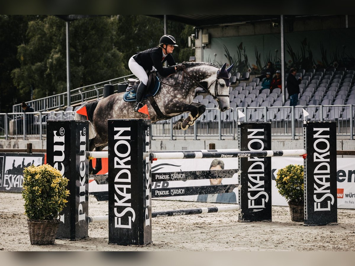 Hamburg has competed from a young age up to the Advanced level, thanks to her good mentality and willingness to perform, which enabled many shared successes. After a few less-than-perfect rounds, her cautious nature became apparent, so we decided to give her a break from jumping and instead focus on her interesting pedigree for breeding purposes. We have now resumed riding her and are in the process of reducing our broodmare herd. The current video was filmed in the indoor arena. For serious inquiries, please contact Philipp Baumgart at 0172 4218881.