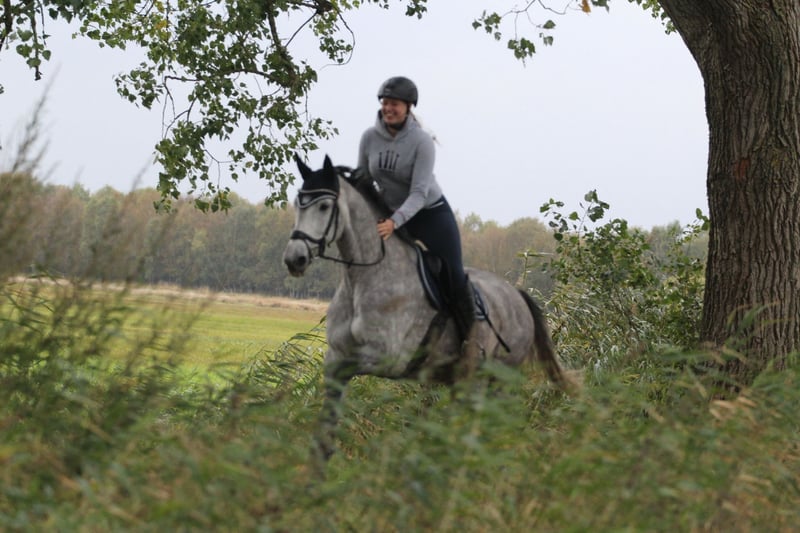 Z ciężkim sercem muszę rozstać się z moją ukochaną klacz Holsztyńską Glariną. Urodziła się 4 maja 2014 roku, ma około 168 cm wzrostu i pochodzi od rodziców Clarimo x Con Air (stam 2004). W skokach przez przeszkody osiągnęła zwycięstwa aż do klasy M*, zawsze imponując swoją chęcią do pracy i sercem do sportu. Już jako czteroletnia klacz wydała na świat swoje pierwsze źrebię, które otrzymało premię za źrebię. W tym roku urodziła drugą klacz, która zdobyła nawet premię na championacie. Niestety, w wieku ośmiu lat musiałam wycofać Glarinę ze sportu z powodu podrażnienia korzenia ścięgna podkolanowego i początku artrozy przedniej prawej nogi. Od dwóch lat cieszy się całkowicie zdrową i bezkłusą czasem na pastwisku. Od połowy listopada Glarina jest ponownie w pełni zdrowa i jeździ się na niej bez problemów. Glarina jest bardzo łagodna w obsłudze, łatwo się załadowuje do wozu, zna cztery i dwa kółka, obecnie porusza się na gołym kopycie. To prawdziwa klacz serca, która swoim ciepłym usposobieniem codziennie sprawia radość – ten krok jest dla mnie niezwykle trudny. Życzę jej domu, w którym będzie doceniona i troskliwie pielęgnowana jako cenna klacz hodowlana. Posiadam aktualne zdjęcia rentgenowskie artrozy przedniej prawej nogi, które potwierdzają, że stan nie uległ zmianie od marca 2024 roku. Chętnie wyślę na życzenie filmy z Glariną. W razie zainteresowania lub pytań proszę o kontakt telefoniczny lub przez WhatsApp pod numerem 0171 2080112. Cena: do negocjacji – 5 000 € (do uzgodnienia)