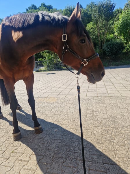 For sale is a Holsteiner mare born in 2013. She stands approximately 1.70 meters and is equipped with Go. Frodi is a horse with a heart of gold. She eagerly awaits her person every day and loves attention. Depending on her mood, she enjoys grooming and cuddling sessions, and treats are always welcome. She is versatile and up for almost any activity, with more movement being always better. Under saddle, she is consistently motivated and sensitive to leg aids. She never becomes headstrong in these situations. Balking and rearing are unfamiliar to her. Her favorite activity is hacking out. She is reliable in all weather conditions and not easily spooked. She can be ridden alone or in a group. She also performs well in the arena. However, she is not a push-button horse and requires regular work and engagement. Due to a cyst in her pastern bone, she should no longer be subjected to high loads and is being sold well below value. Relaxed rides or light work on the arena should pose no problem. The condition could potentially be managed with appropriate shoeing and various treatments. Frodi’s sensitivity under saddle means she is not suitable for beginners or reiners. She has previously had two foals and could also be of interest as a broodmare. Pedigree: Cormint × Cascavelle Frodi is vaccinated and dewormed. She has also been regularly checked by an osteopath and dentist. An ultrasound examination from early 2024 and current X-rays are available and can be sent upon serious interest. A personal viewing is possible by appointment. Currently, she is on pasture and cannot be tried under saddle. Price is negotiable; the place comes first. Feel free to contact us if interested!