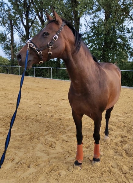 Moondance ist eine 16 jährige, Sooty braune Holsteiner Stute. Aufgrund einer Verletzung im Fohlenalter ist sie bedingt reitbar. Durch diese Verletzung bildeten sich Chips, welche die Vorbesitzer nicht behandeln ließen. Wir haben sie 3 jährig gekauft, begannen mit dem einreiten und dadurch fiel es auf. Wir haben sie operieren lassen, wobei 2 von 3 Chips vollständig entfernt werden konnten. Der 3. ist zu nah an der Sehne. Zudem hat sie im vorderen rechten Fesselgelenk Arthrose, welche bei passender Pflege aber nicht groß auftritt. Sie wurde von uns schonend auf dem reitplatz, hauptsächlich vom Boden aus, bewegt. Gemütliche Geländeritte im Schritt macht sie an schmerzfreien Tagen auch mit. Im trab beginnt sie nach wenigen Schritten zu lahmen, im Sommer nicht so stark wie im Winter. In der Zucht haben wir es auch probiert. Sie wurde 2023 vom Hengst „Champion De Luxe“ besamt, hat jedoch nicht angenommen. Mittlerweile ist sie für ein erstes Fohlen zu alt. Moondance ist etwas (sehr) zu kräftig, was wir aber so gut es geht abspecken.( so gut das mit kranken Beinen eben geht) Moondance ist ein absoluter Traum. Man kann mit ihr viel Horsemanship machen, sie läuft wie ein Hund hinterher, achtet sehr auf Körpersprache und hat generell starkes Interesse an Zuneigung und Aufmerksamkeit. Da sie ja nie richtig angeritten wurde, ist sie absolut nichts für Kinder, Wiedereinstiege oder jemanden, der ein Reitpferd sucht. Ein-zwei Mal im Monat drauf setzen, sie ins Gelände mitnehmen (ob mit Reiter oder als handpferd) sind problemlos drin. Sie ist in Herden eher Ranghöher, verteidigt ihre Position dort auch dominant. Sie steht bei uns mit zwei Pferden und zwei Ponys in einem Offenstall, wird nur zur Fütterung getrennt. Sie kennt jeden Lärm, geht zuverlässig zu jeder Zeit auf jeden Anhänger, kennt Western sowie Englisch Sättel. Sie ist unfassbar fein im Maul und eher darauf ausgelegt, auf Gewicht und beinhilfen zu reagieren. Wir hoffen, dass sich jemand findet, der sie schon im Training behält, damit sie nicht maßlos Verfettet und sich die Beine kaputt steht, von ihr aber nicht erwartet, dass sie jederzeit zum losreiten bereit ist. Genauso wollen wir nicht, dass sie zum Wanderpokal wird, weswegen wir diese Anzeige ehrlich aufgeben. Wenn Sie also ein Reitpferd suchen, ist unsere Moondance nichts für sie. Bei Interesse schreiben sie uns gerne an, wir stehen für weitere Informationen und mehr Details zur Verfügung und würden uns freuen, wenn Sie für unsere Moondance einen Platz bis an ihr Lebensende bieten können. Das hat sie nämlich verdient.