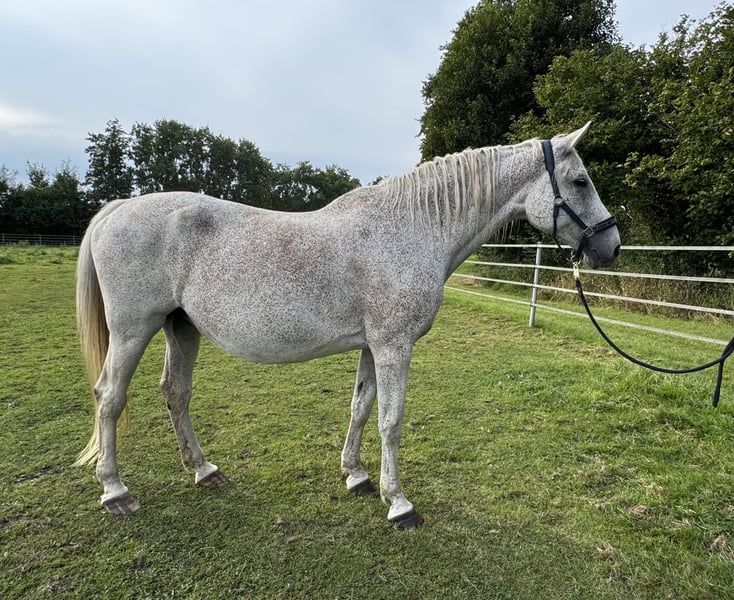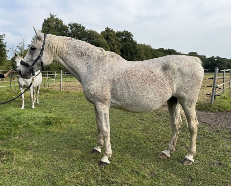 Zassina is an 18-year-old mare with an excellent pedigree, successfully competing up to class S in show jumping. She was born and raised with us and initially achieved great success in her mare performance test, where she was awarded the district premium and ranked among the top mares of her year. Additionally, she has been highly successful in competition, with numerous placings and wins up to the S* level. Following her competitive career, she has produced outstanding foals, one of which became vice-champion at the Holsteiner Foal Championship. Due to a reduction in breeding plans and herd size caused by our trainer’s studies, Zassina is now for sale and has not been covered recently. She is accustomed to 24/7 turnout in an open stable with adjoining pasture and is a sweet, uncomplicated mare. She will only be sold to the right, suitable person. Further information gladly also by phone at 0173 9171091.