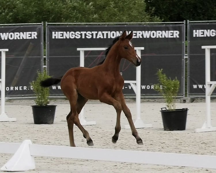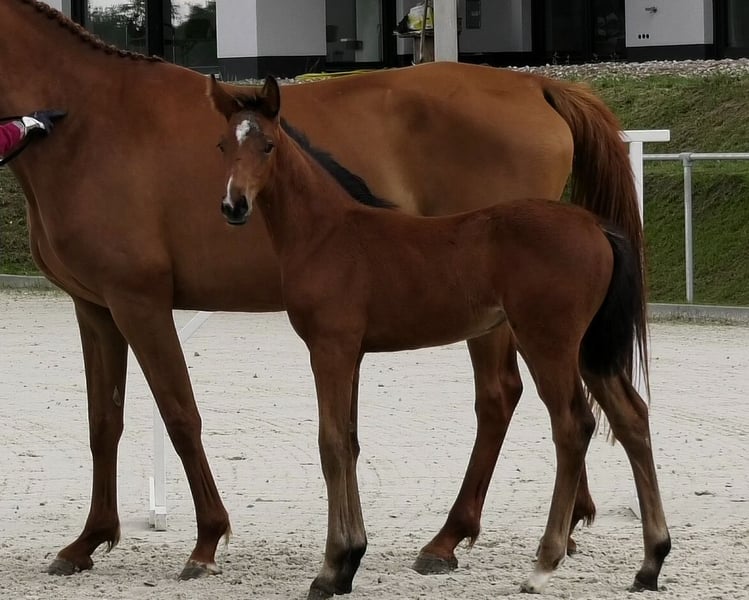 This outstanding filly achieved reserve champion status at the Holsteiner Foal Show in Ladeburg and is thus qualified for the Holsteiner State Championship in Elmshorn. She is among the best foals of her age group! The mare is bred with a focus on dressage and possesses three very good basic gaits. Particularly noteworthy is her excellent trot: elastic, ground-covering, with powerful push-off and always in rhythm. She is correctly built, beautiful, curious, and always friendly in handling. A horse for the future! With her uncomplicated nature and high-quality lineage, she is the ideal young horse for ambitious amateurs as well as for professional sport. Completely healthy, from a renowned breeder with optimal care, correctly dewormed and presented to the farrier. We look forward to your interest and would be happy to show you the foal on-site! Contact us also via WhatsApp: +49 176 55323449. The sire of this special foal is the Dutch shooting star Extreme US (Stallion Station van Uytert/Paul Schockemöhle). Extreme is a highly rated movement stallion with outstanding rideability (dream score of 10) and impressive achievements: winner of his stallion performance test, winner of the Pavo Cup 2023, winner of the KWPN Stallion Competition 2023/2024. His offspring include numerous winning foals, championship foals, and spectacular auction foals. The maternal lineage of our sales foal goes back to the founding sire Vivaldi and the sought-after jumping blood of C-Indoctro in the Holsteiner performance line 474a. This line is characterized by the international caliber of its many successful horses.