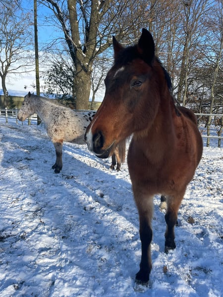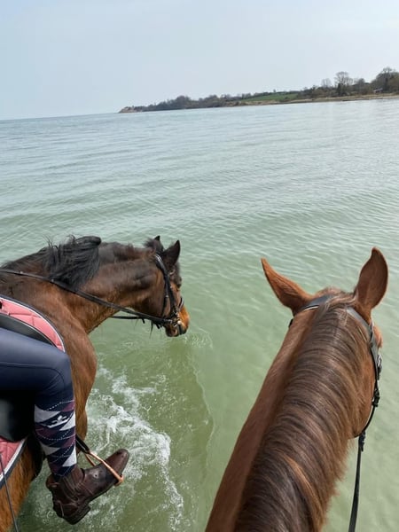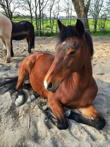 Holsteiner Mare with passport, born in 2004, 1.65 m tall, regularly vaccinated and dewormed. Kaya has been with me since 2012, and I am only selling her now because I am moving to the capital for personal and professional reasons and cannot take her with me or give her the attention she deserves. Therefore, I am truly parting with her only with a heavy heart, and it is very important to me that she finds a responsible and caring new home — priority over price! Despite being 21 years old, she is fully rideable and in excellent condition, aside from mild Cushing’s disease, which mainly manifests as a slightly thicker coat in winter than typical for a Holsteiner. Thanks to Prascend, we have managed this well so far. She is very well-behaved, knows groundwork, and works attentively and with enthusiasm. She also enjoys jumping, preferably with an experienced rider. She likes to go out on rides and appreciates mental stimulation. She is good with the farrier and veterinarian, though she’s not particularly fond of trailer transport since she hasn’t had to do it often, but she handles it well. She is also familiar with dogs and cats. In terms of character, she is very friendly, curious, and open-minded. She also gets along well with children. For the past ten years, she has been housed in a paddock paradise with a mixed herd, where she has always been calm and balanced. Feel free to contact me anytime if you have further questions!