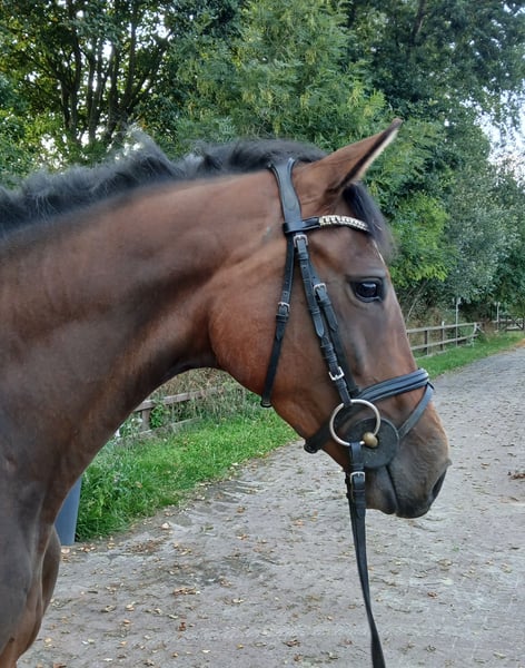 Zum Verkauf steht eine 3 jährige Holsteinerstute von Chubakko x Clinton I. Chukka ist gut angeritten und lässt sich sicher in allen drei Grundgangarten reiten. Auch die ersten Sprünge unterm Sattel hat sie ganz selbstverständlich gemeistert. Wir können sie uns gut als Mädchen- oder Damenreitpferd vorstellen, da sie im kleinen Rahmen steht, aber trotzdem gut abdeckt. Auch mit einem schwächeren Reiter absolviert sie souverän ihre Aufgaben, wobei sie aufgrund des Alters kein Anfängerpferd ist. Sie ist mit drei guten, schwungvollen Grundgangarten ausgestattet, wobei sie einen gut in der Bewegung mitnimmt. Auch im Umgang ist Chukka sehr brav. Videos vom Reiten, Springen unterm Sattel und Freispringen liegen vor.